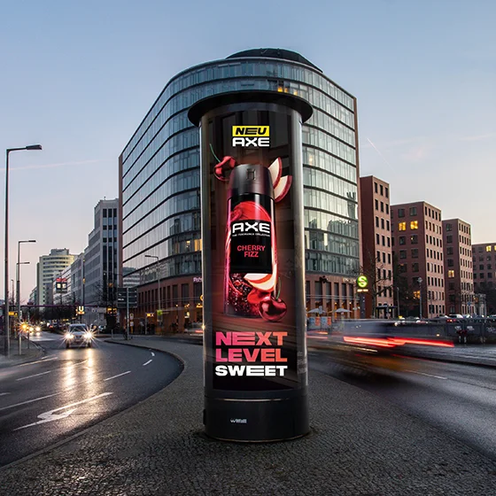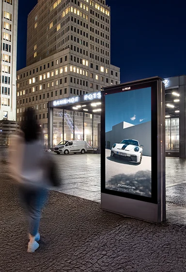 Unsere Digital City Light Poster (DCLP) sind ausschließlich an den besten Standorten in deutschen Großstädten zu finden. Die dynamische Inszenierung sorgt für größere Aufmerksamkeit und lebendige Inhalte. Interaktionsmöglichkeiten über Smartlinks und die Fähigkeiten Content datenbasiert und vernetzt in Echtzeit auszuspielen machen das DCLP zum leistungsstarken Hybrid aus Plakat, TV und Smart-Device.