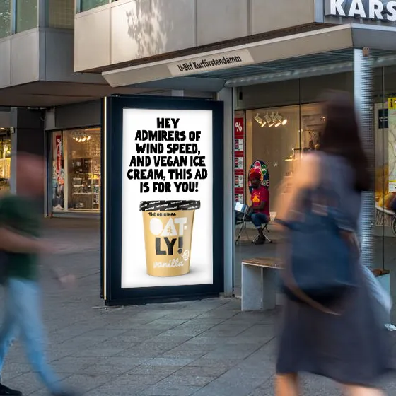 DCO maximiert die Relevanz und dem Impact von OOH-Kampagnen. Kampagnenmotive werden auf individueller Datenbasis dynamisch nach Zielgruppe und/oder Umweltfaktoren angepasst und entsprechend ausgespielt. So erreichen Sie ihre Zielgruppe zur richtigen Zeit, am richtigen Ort, mit der richtigen Botschaft.